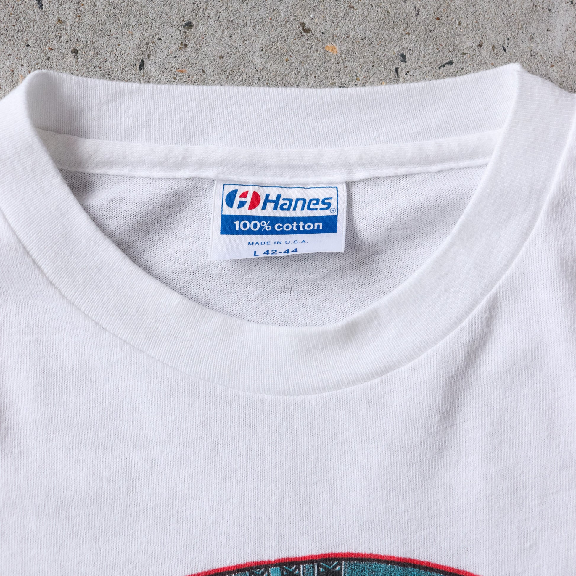 Single stitch. Made in USA. 100% cotton Hanes blank.